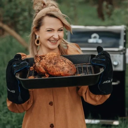 Żeliwna brytfanna z rusztem pozwala przygotować potrawy, które trudno zrobić bezpośrednio na ruszcie. Stabilna temperatura, równomierne pieczenie i wygoda użytkowania sprawiają, że grillowanie staje się jeszcze bardziej wszechstronne.