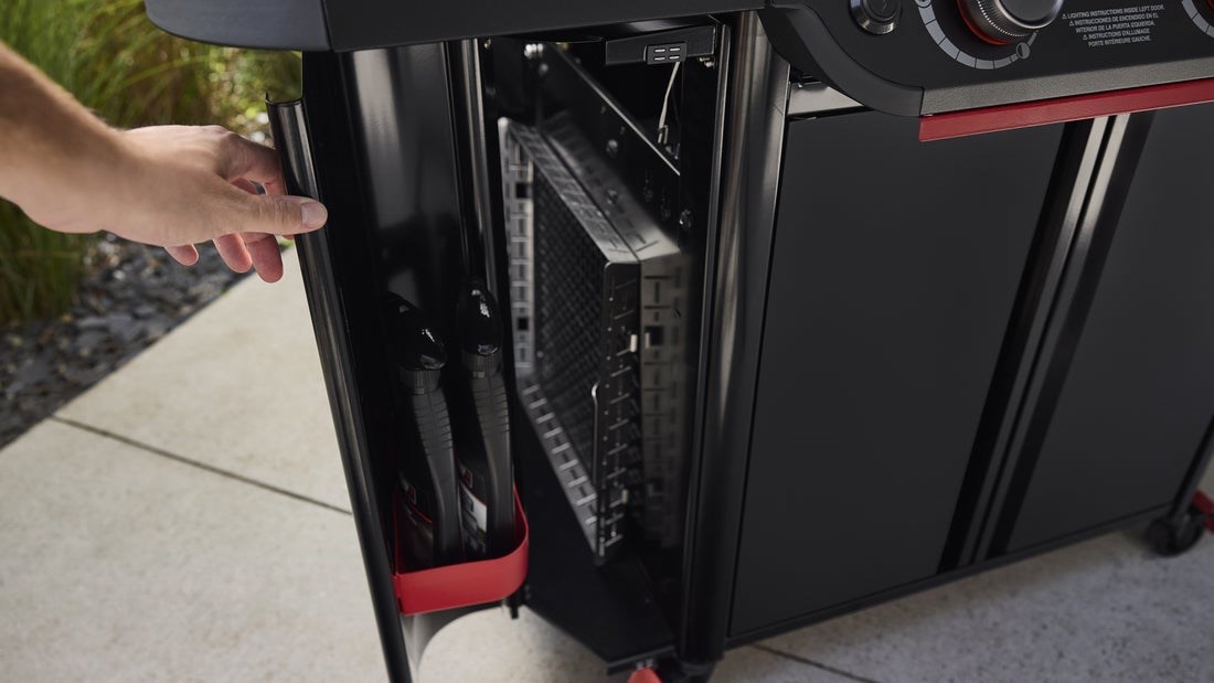 Wersja Stealth wyró偶nia si臋 eleganckim, ciemnym wyko艅czeniem i nowoczesnym stylem. Solidna konstrukcja, praktyczne pó艂ki boczne oraz szafka na butl臋 gazow膮 sprawiaj膮, 偶e grill jest nie tylko funkcjonalny, ale równie偶 艣wietnie prezentuje si臋 na tarasie lub w ogrodzie.